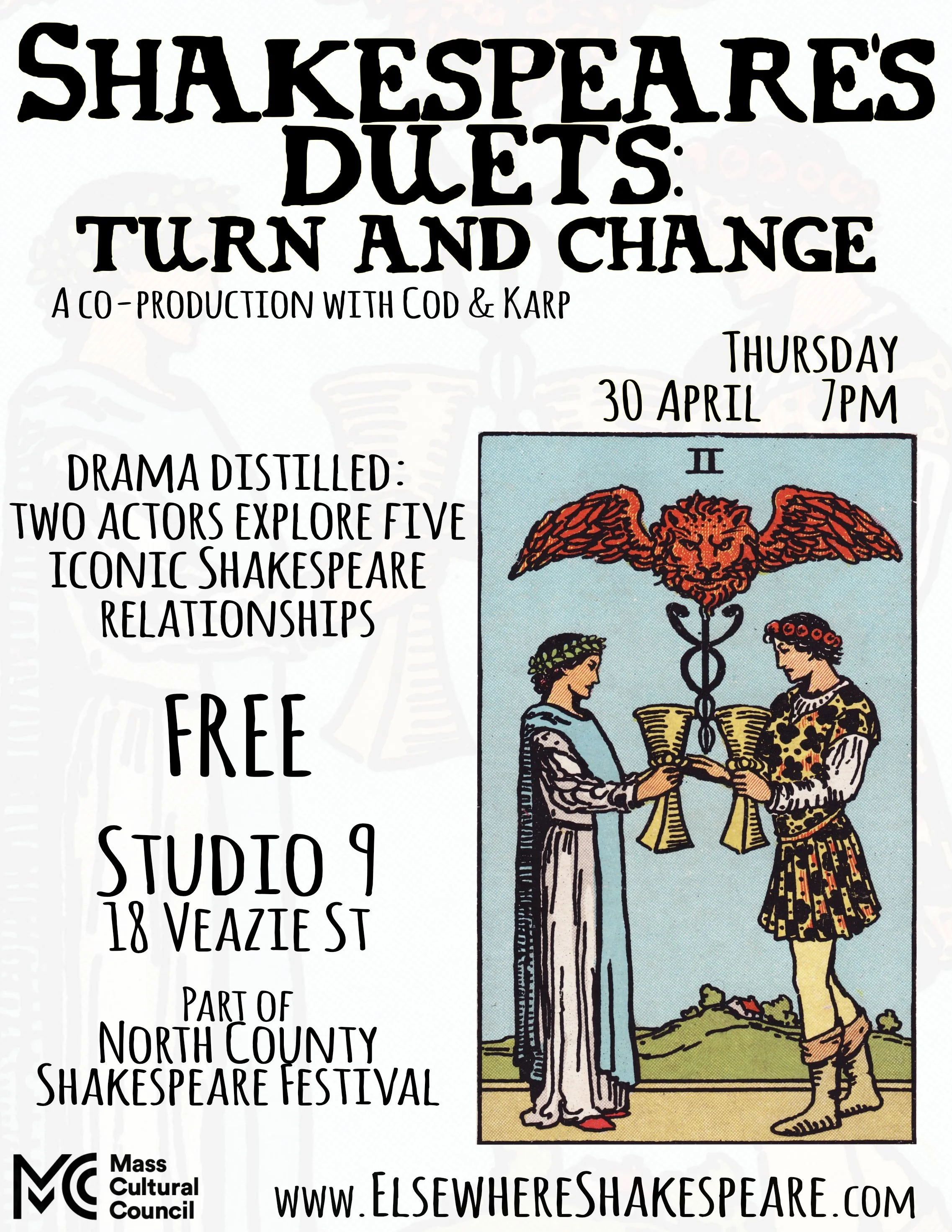 Performing Shakespeare’s Duets: Turn & Change with acting and devising partner, Andrew Codispoti in North Adams, MA as part of North County Shakespeare Festival.